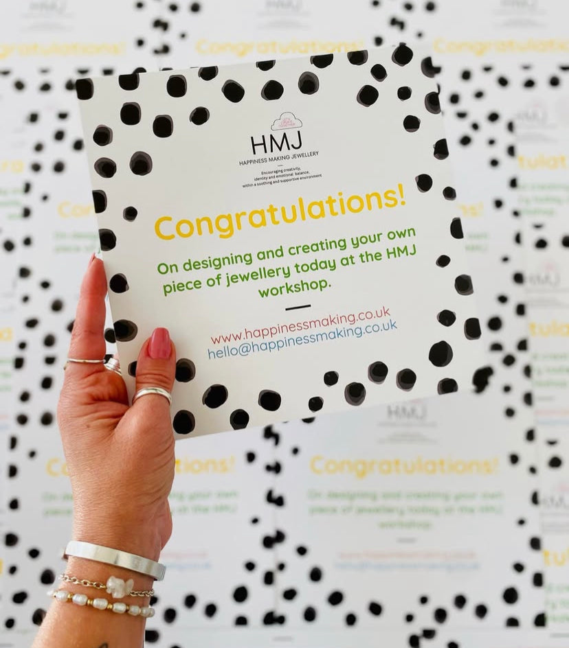 HMJ workshops are designed to support mental health and wellbeing. By combining creativity with mindfulness, participants can express themselves, reduce stress, and build confidence. Creating jewellery in a relaxed, supportive environment has a positive impact, helping individuals focus, reflect, and leave with a sense of achievement and joy.