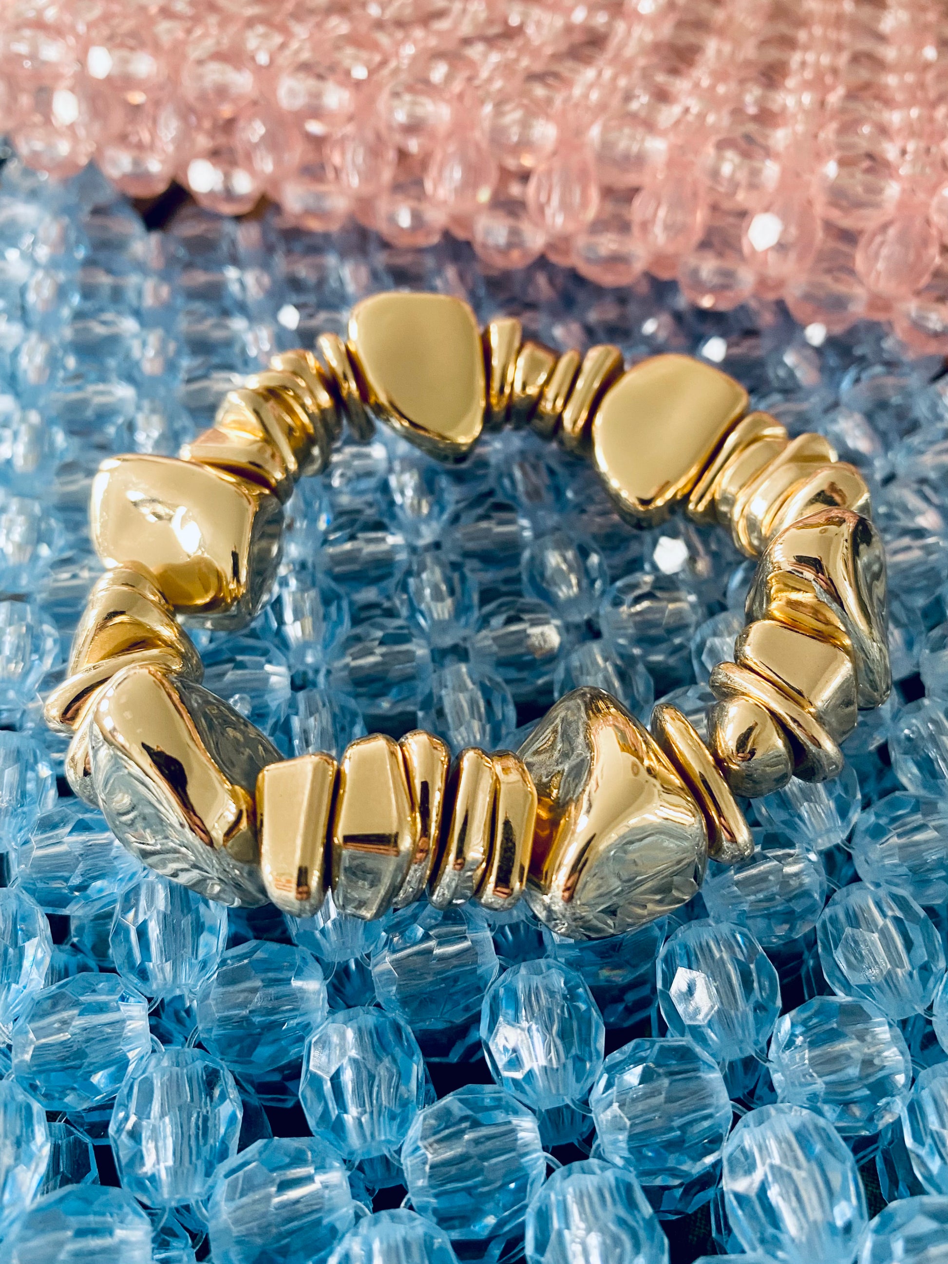 An exclusive handmade stunning bracelet, featuring a mixture of gold coated numerous sized beads, giving this piece a luxury and gorgeously glam feel.